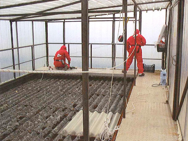 Désamiantage du site, toiture et plafond par l'extérieur / Conception d'un confinement amovible